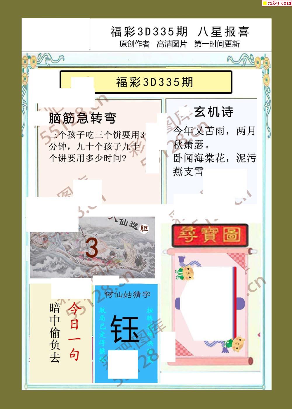 > 八星报喜25年335期福彩3d画谜