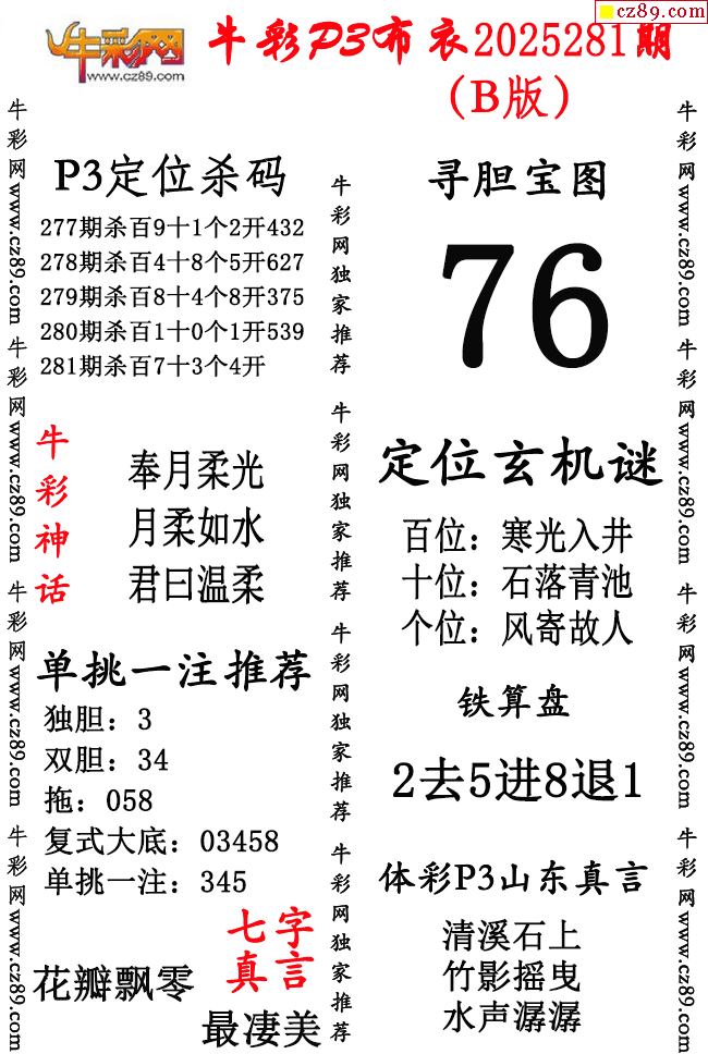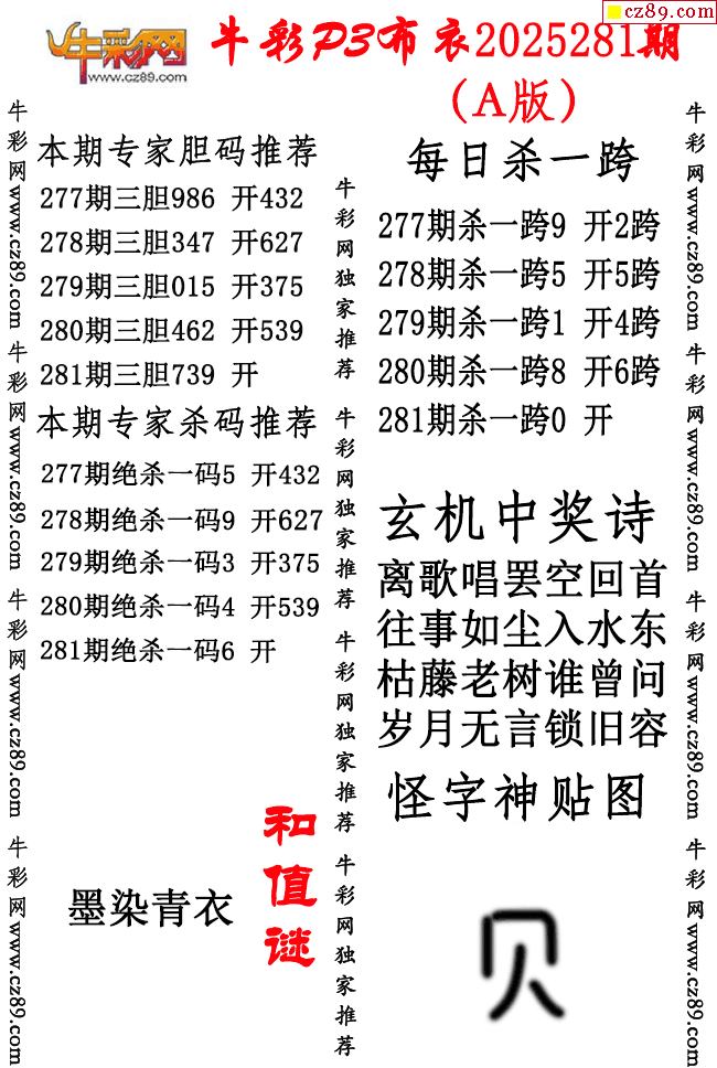 牛彩P3布衣25年281期AB版图谜(精华版)